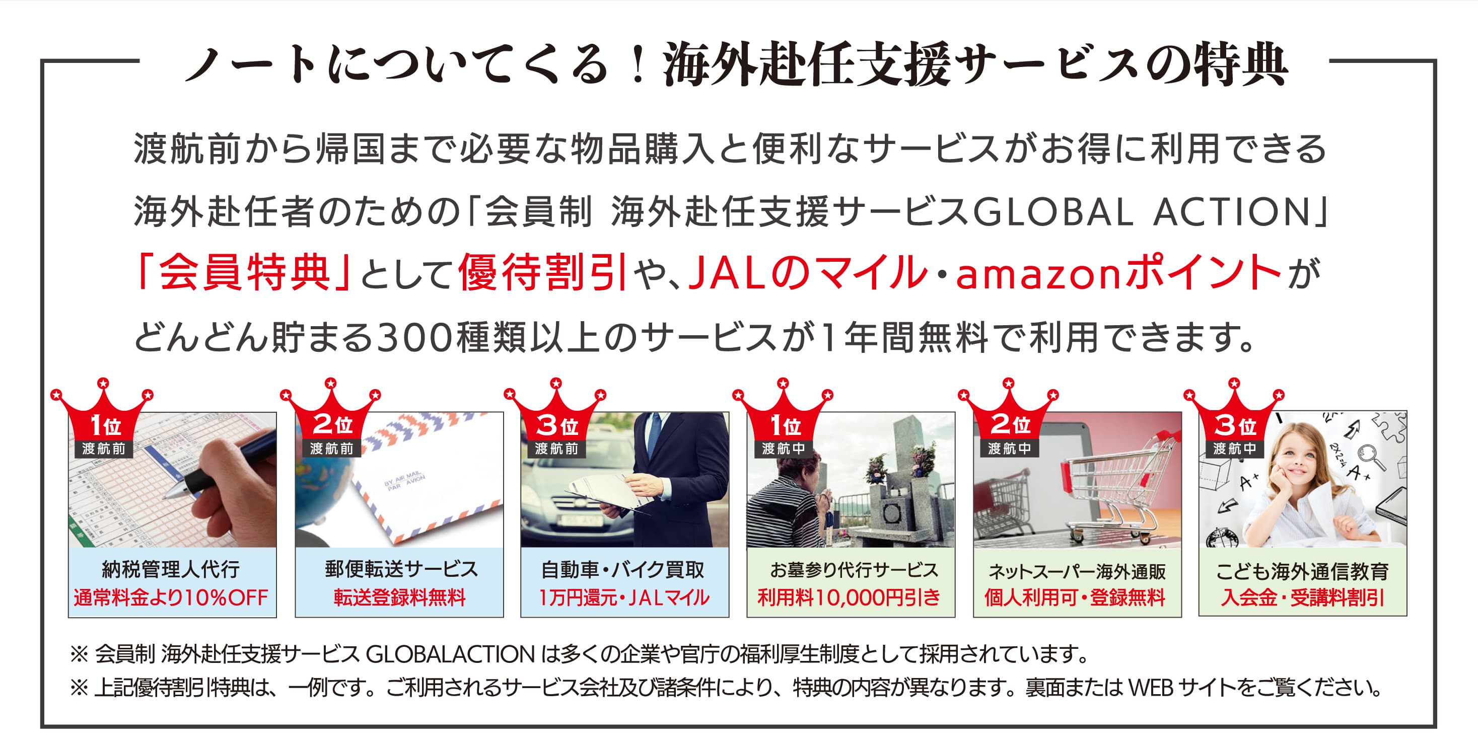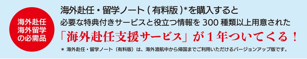 海外赴任・留学ノート(有料版)*を購入すると 必要な特典付きサービスと役立つ情