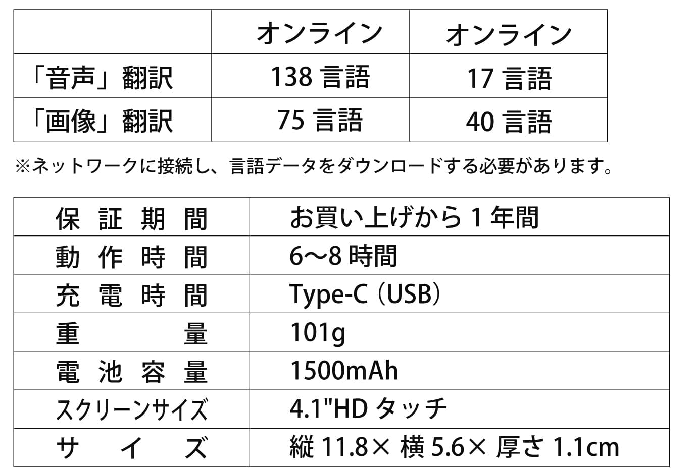 双方向音声通訳はオンラインで138言語、オフラインで17言語に対応さらにカメラ画像翻訳はオンラインで75言語、オフラインでは40言語に対応しています。(オフライン言語は、ネット接続の上、事前ダウンロードを要します)