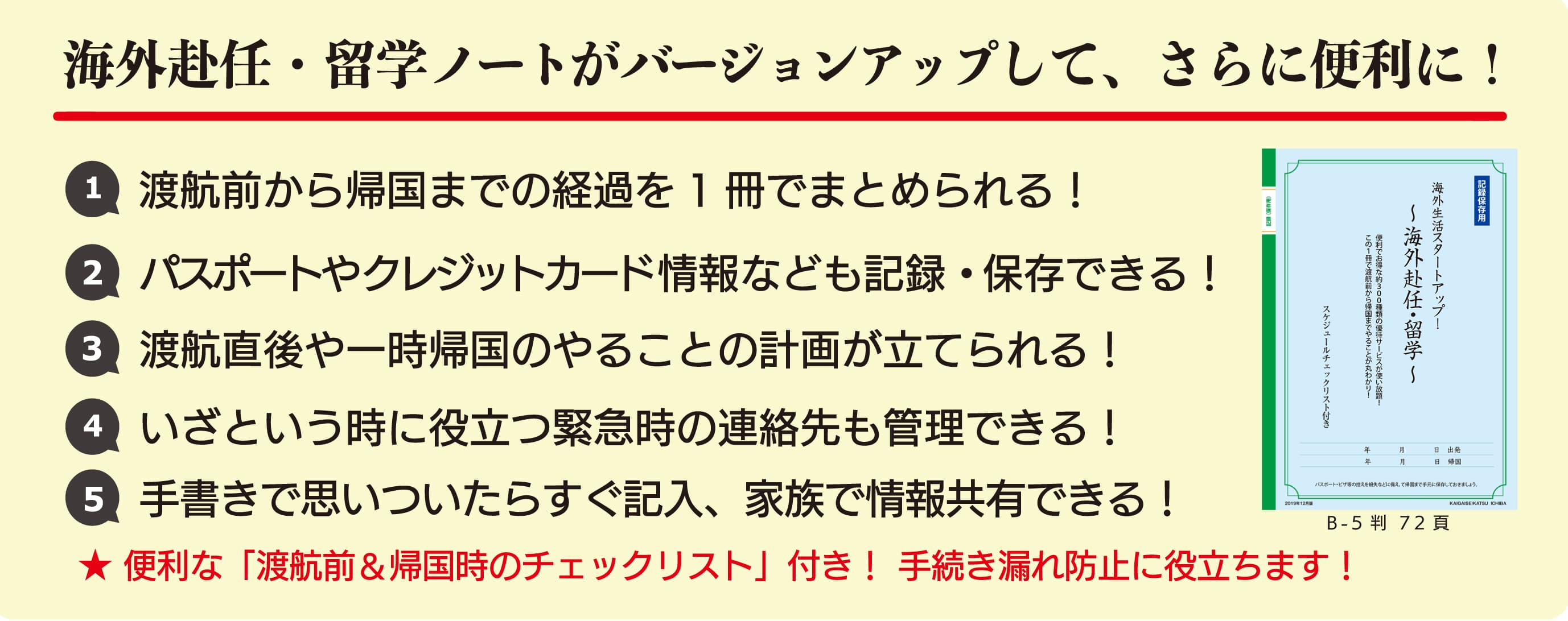 海外赴任・留学ノート(有料版)*を購入すると 必要な特典付きサービスと役立つ情
